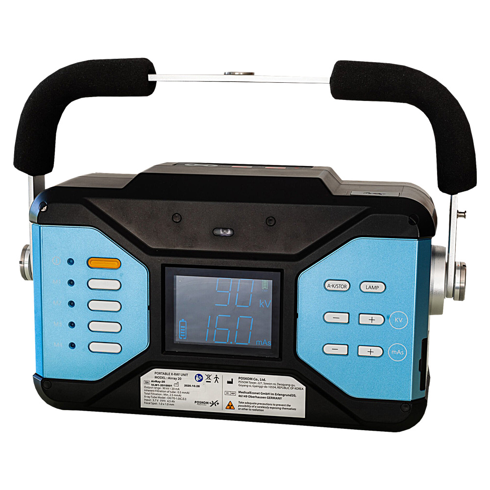 La unidad de rayos X portátil Poskom Air Ray-20 es un nuevo concepto de la radiología portátil, al ser ultraligero y compacto, se convierte en una solución versátil y eficiente para radiografía en exteriores o situaciones móviles. Su pantalla principal y pantalla de operación mini, permite la lectura rápida de las técnicas kV y mAs. Este sistema es ideal para la radiografía de extremidades, articulaciones, cuellos y más.